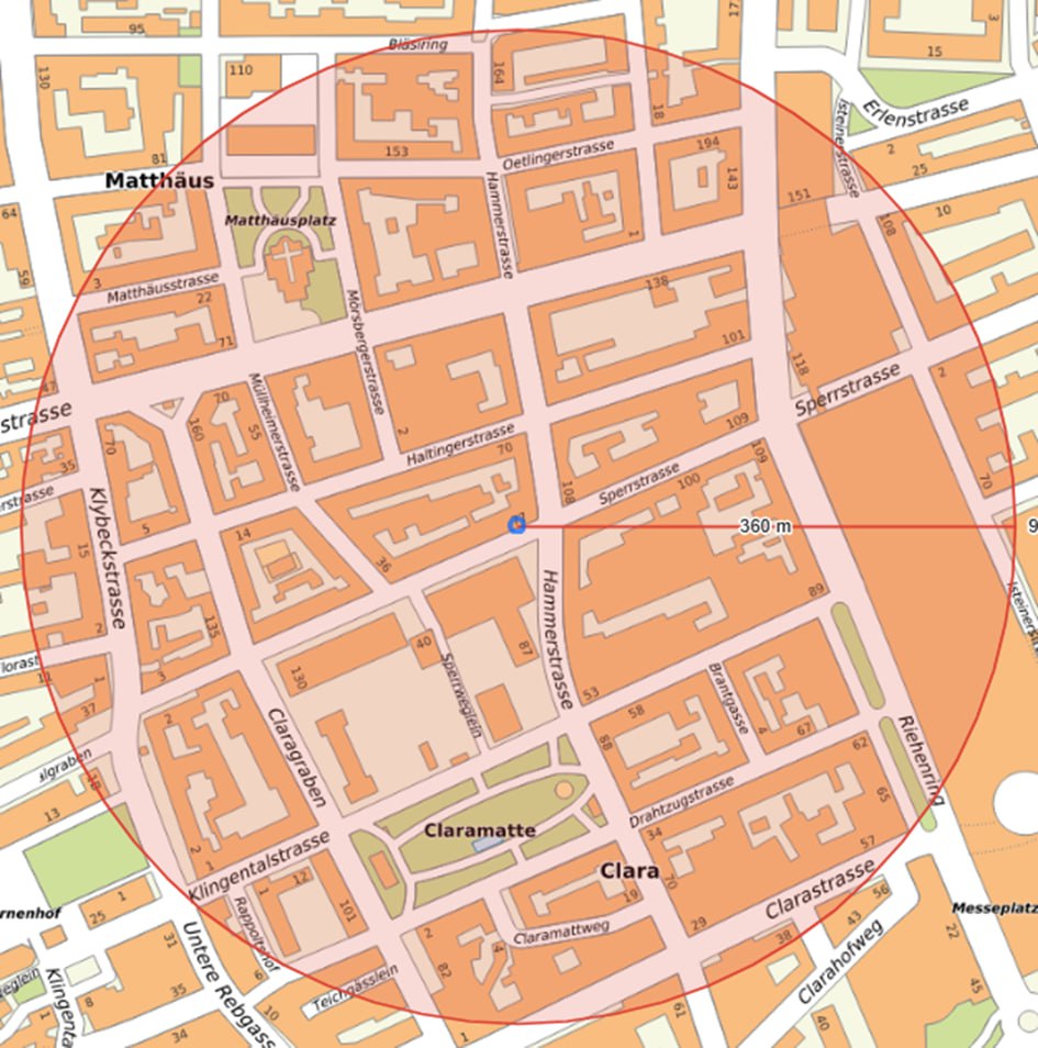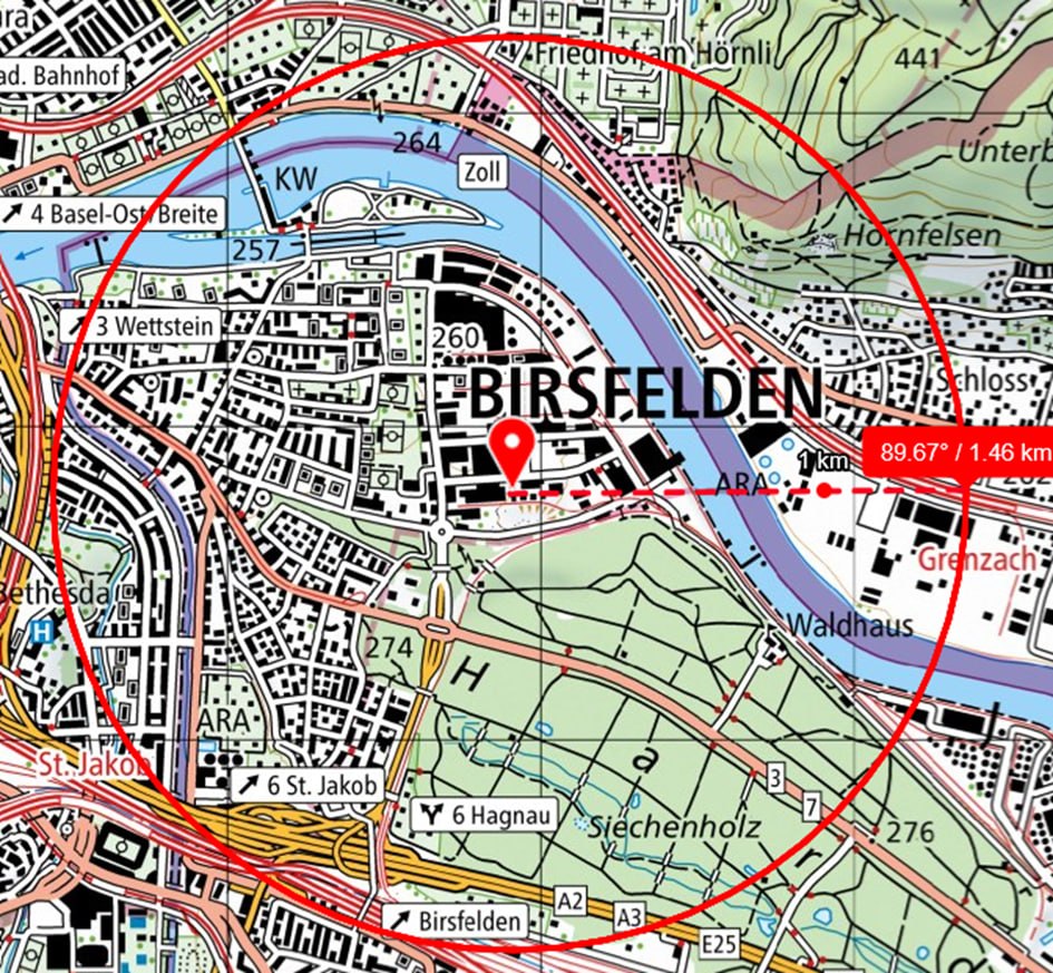 Einspracheradius: 1458.29 m