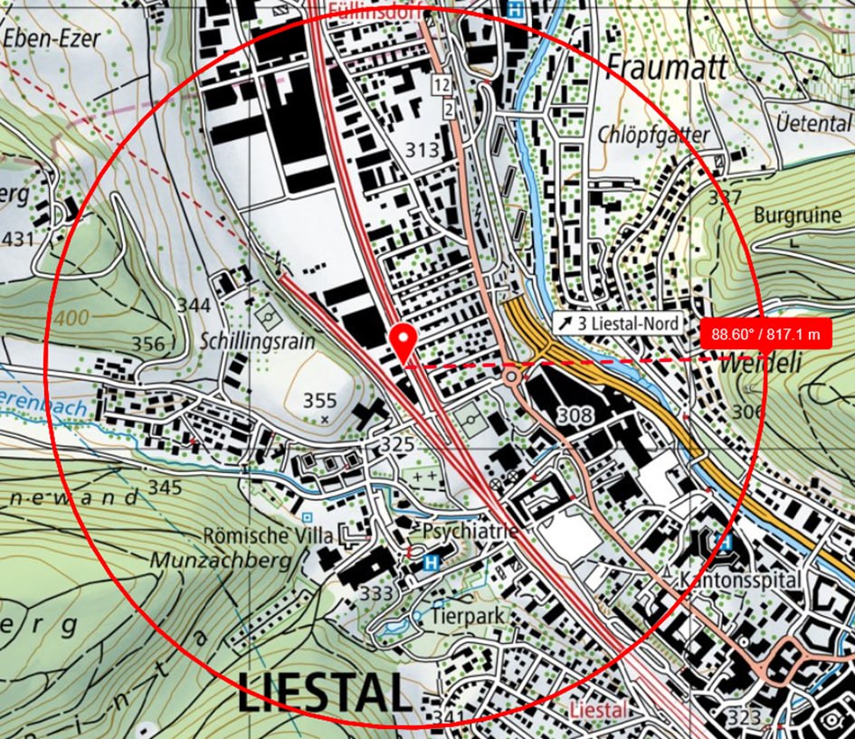 Einspracheradius: 816.33 m